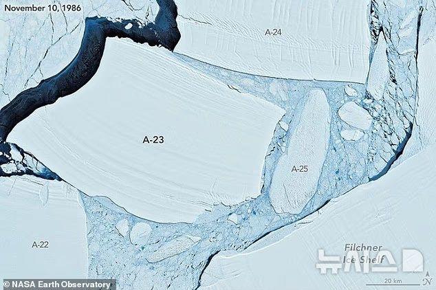 A-23A는 1986년 남극 필히너-론네 빙붕에서 분리된 뒤 해저에 걸려 30년 이상 움직이지 못한 채 '얼음 섬'처럼 머물렀다. 이후 2020년 해저에서 떨어져 나오며 본격적인 표류를 시작했다.