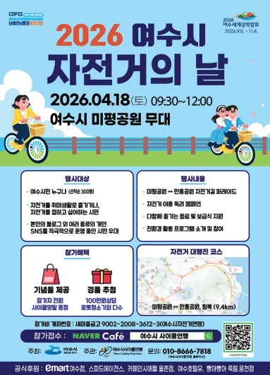 이번 행사는 여수시가 주최하고 여수시사이클연맹이 주관하며, 오전 9시 30분부터 미평공원 일원에서 진행된다.
