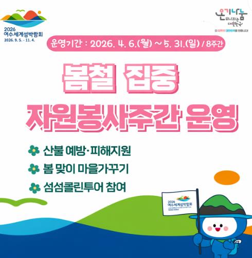 특히 2026여수세계섬박람회를 앞두고, 5월부터 ‘섬섬여수 볼런투어(Voluntour)’ 프로그램을 본격 운영해 자원봉사와 관광을 결합한 이색 참여 기회를 제공할 예정이다.
