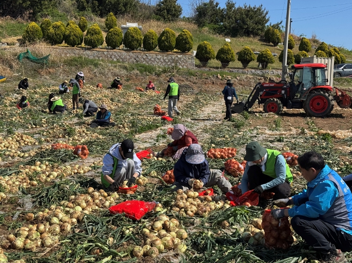 참여자들은 화양면 안포리 세포마을 600평 규모의 양파 재배농가에서 수확과 선별 작업, 양파망 작업등을 도우며 적기 영농 실현과 농가 경영 안정에 기여했다.