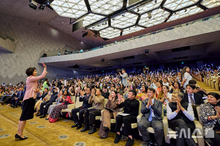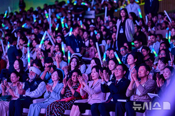 [나이스데이] 김혜경 여사가 20일(현지시간) 인도에서 열린 K팝 경연대회에 참석해 인도 내 K컬처 확산을 이끌어가는 인도 청년들을 격려했다.
