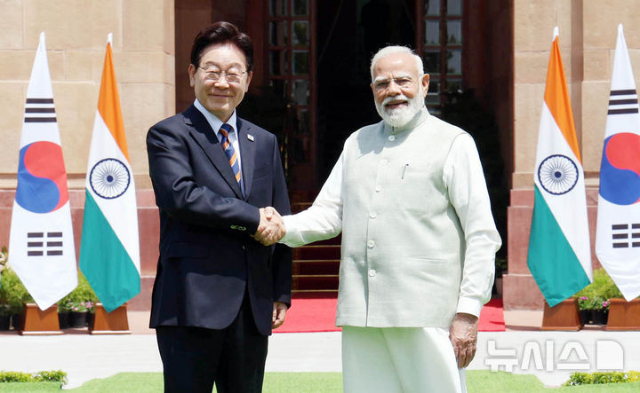 24일(현지시간) 청와대는 이 대통령이 나렌드라 모디 인도 총리에게 청동 반가사유상 모형과 호랑이 수묵화를 선물했다고 밝혔다.