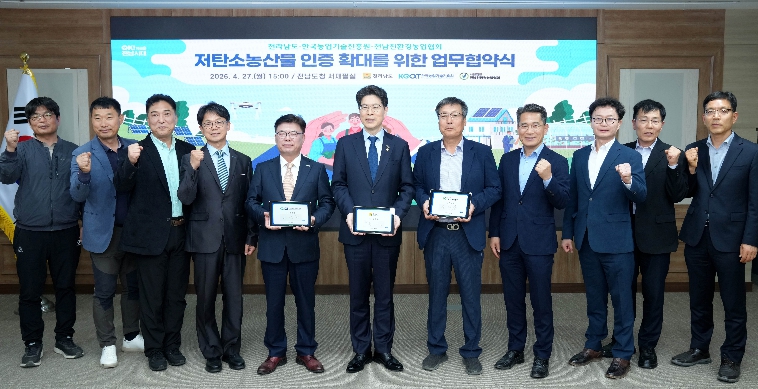 황기연 부지사는 “협약을 계기로 전남도가 저탄소농업을 선도하는 중심지로 도약하고, 농업의 새로운 미래를 열길 기대한다”며 “저탄소농산물이 단순한 인증에 그치지 않고 농가 소득으로 이어지도록 소비 확대 기반을 함께 만들겠다”고 말했다.