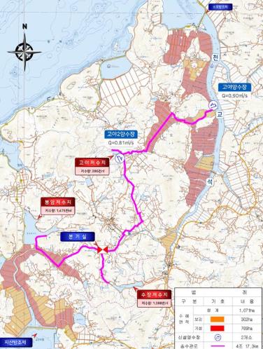 농림축산식품부의 농촌용수이용체계재편사업은 과거 단일 수원공의 용수를 해당 관개지역에만 급수하는 개념에서 벗어나, 여러 개의 수원공을 포괄하는 권역 개념에서 전체적인 용수공급과 수요를 고려하는 접근방식으로서 다목적 용수를 공급하기 위한 사업으로 총사업비 285억원 전액 국비로 추진된다.