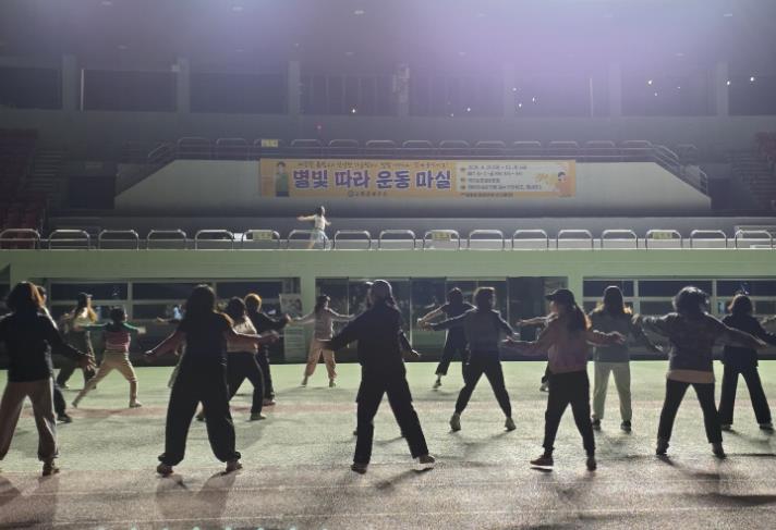 ‘별빛 따라 운동 마실’은 오는 10월 30일까지 매주 화·수·금요일 오후 8시부터 9시까지 1시간 동안 박지성 공설운동장에서 운영된다.