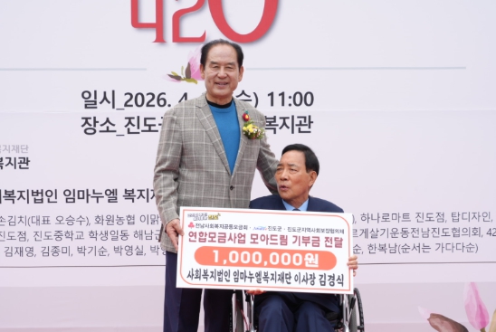 아울러, 이날에는 사회복지법인 임마누엘복지재단(이사장 김경식)이 지역의 발전과 취약계층을 위해 ▲진도군인재육성장학회 ▲고향사랑기부제 ▲모아드림에 각 100만 원씩, 총 300만 원을 기부했으며, 나눔 실천을 위해 ‘장애인사회공헌 420챌린지’를 통해 모금한 42만 원을 모아드림에 기탁 했다.
