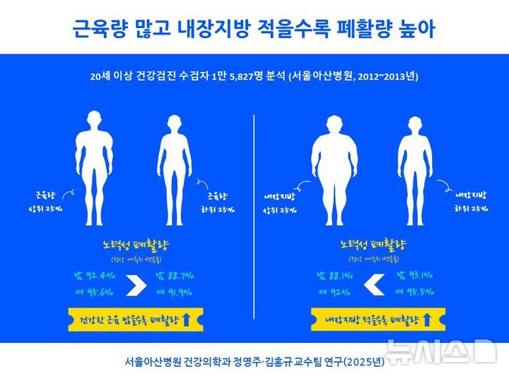 정영주 서울아산병원 건강의학과 교수는 “폐 기능을 향상 시키려면 내장지방을 줄이면서 지방이 적은 건강한 근육을 늘려야 한다"면서 "개개인의 신체구성에 맞는 적절한 운동과 식이관리를 하는 것이 필요하다”고 말했다.