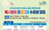 여수 손태성 기자2026. 03.25[나이스데이]여수시는 오는 3월 30일부터 4월 3일까지 공립 작은도서관 ‘2026년 상반기 독서문화 프로그램’ 수강생을 모집한다고 밝혔다. 이번 프로그램은 유아부터 성인까지 전 연령층을 대상으로 한 맞춤형 강좌 총 12개로 구성되며, 4월부터 5월까지 운영된다. 성인 대상 프로그램은 ▲시니어, 숨한번, 책 한권 끝내기 ▲글이 물드는 시간 ▲책 한장, 뜨개 한 코 ▲책과 영상과의 만남 ▲손바느질로 만나는 그림책 여행 ▲그림책 큐레이션 자격증반 ▲AI로 완성하는 디지털 콘텐츠 제작 등 7개 과정이다. 유아·초등 대상은 ▲그림책 …
