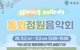 보성 정승희 기자2026. 04.08[나이스데이]전남 곡성군은 오는 5월 2일부터 5월 3일까지 2일간 곡성읍 묘천리 일원에 조성된 동화정원에서 ‘봄의 멜로디’ 음악회를 개최한다고 8일 밝혔다. 이번 음악회는 오후 1시부터 4시까지 진행되며 봄의 정취가 가득한 정원 속에서 음악과 체험, 휴식을 함께 즐길 수 있는 복합문화 프로그램으로 운영된다. 동화정원은 지난해 가을 황화코스모스가 장관을 이루며 인생사진 명소로 떠오른 곳으로, SNS를 통한 자발적 홍보로 많은 관광객의 발길을 이끌었다. 올 봄에는 초록빛 밀밭을 비롯해 수레국화, 양귀비, 안개꽃 등이 어우러져 …