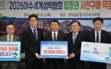 광주 이자형 기자2026. 04.02[나이스데이](재)2026여수세계섬박람회조직위원회는 4월 2일 전남도청 VIP실에서 탑솔라㈜와 ‘2026여수세계섬박람회 입장권 구매약정식’을 개최했다고 밝혔다. 이날 약정식에는 유병진 탑솔라㈜ 대표이사, 황기연 전라남도지사 권한대행과 정현구 여수시장 권한대행, 김종기 조직위 사무총장 등이 참석했으며, 탑솔라㈜는 2천만 원 상당의 입장권을 구매하기로 약정했다. 전남에 본점을 둔 탑솔라㈜는 태양광 발전 사업을 기반으로 신재생에너지 분야에서 성장하고 있는 기업으로, 친환경 에너지 확산과 지역사회 발전에 기여하고 있다. 현재 전남개…