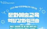 광주 이자형 기자2025. 08.08[나이스데이] 광주문화재단(대표이사 노희용) 문화예술교육지원센터는 오는 8월 8일 오후 2시, 빛고을아트스페이스 대강당에서 ‘문화예술교육 역량강화 워크숍’을 개최한다. 이번 워크숍은 '2025 예술시민문화예술교육 지원사업'의 일환으로, 문화예술교육 현장에서 활동하는 단체 및 실무자의 실무 역량 강화를 위해 마련됐다. 특히 이번 행사는 문화예술교육 관계자들이 어렵지만 꼭 알아야 할 주제인 ‘보조금 정산’과 ‘브랜딩 전략’을 중심으로 구성되어 실질적인 고민 해결에 초점을 맞췄다. 첫 번째 강의는 한미회계법인 김소영 회계사의…