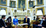 김혜경 여사, 브리지트 여사와 국중박 관람…반가사유상 함께 보며 친교