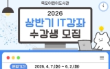 목포 박정래 기자2026. 03.19[나이스데이] 목포어린이도서관은 오는 4월부터 지역 어린이들의 디지털 역량 강화를 위한 ‘2026년 상반기 IT강좌’를 무료로 운영한다. 이번 강좌는 ▲내가 만드는 로봇(초등 2~4학년) ▲메타버스 상상학교(초등 2~4학년) ▲인공지능과 PPT 마법사(초등 3~6학년) 등 총 3개 과정으로, 각 8회차로 진행된다. 프로그램은 어린이 눈높이에 맞춰 쉽고 흥미롭게 구성해 디지털 기술을 자연스럽게 익힐 수 있도록 했다. 참여 신청은 3월 23일부터 목포시통합도서관 누리집을 통해 가능하며, 기타 자세한 사항은 목포어린이도서관으로 문…