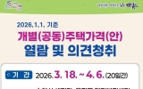 순천 손태성 기자2026. 03.18[나이스데이] 순천시는 1월 1일 기준 개별(공동)주택 가격 열람 및 의견제출 기간을 3월 18일부터 4월 6일까지 운영한다고 밝혔다. 이번 열람 대상 개별주택은 32,223호, 공동주택은 90,057호로 개별(공동)주택 특성 등을 조사해 산정했으며, 가격의 공정성과 객관성을 높이기 위해 한국부동산원(순천지사)의 산정가격 적정성 여부 등의 검증 절차를 마쳤다. 개별(공동)주택 가격의 열람은 세정과 및 읍면동 행정복지센터를 방문하거나 순천시 누리집 및 부동산공시가격알리미를 통해 확인할 수 있다. 열람가격에 의견이 있는 소유자 및…