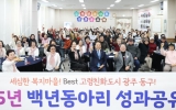 구청 이영욱 기자2025. 12.01[나이스데이]광주 동구는 지난달 28일 ‘2025년 백년동아리 성과공유회’를 열고 올 한 해 어르신 여가 활동 성과를 공유했다고 밝혔다. 동구는 지난 2021년부터 백년동아리 사업을 운영하며 어르신들이 취미활동을 통해 일상에 활력을 찾고 사회적 관계를 확대할 수 있도록 다양한 여가 프로그램을 지원해왔다. 올해 백년동아리에는 13개 분야에 400명의 어르신이 참여했다. 동구는 동아리 분야 구성과 운영 방식을 조정해 프로그램의 밀도와 참여 만족도를 높이는 데 중점을 뒀다. 성과공유회에서는 미술·캘리그래피·뜨개 작품과 활동 사진…