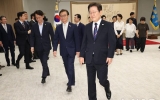 진도 양광 기자2025. 07.28[나이스데이] 이재명 대통령은 28일 새 정부 신임 국무위원들과 국세청장에 임명장을 수여했다. 이 대통령은 이날 오전 용산 대통령실에서 수여식을 갖고 정동영 통일부·안규백 국방부·전재수 해양수산부·한성숙 중소벤처기업부 장관에 임명장을 전달했다. 이 대통령은 정 장관에게 먼저 임명장을 전달하며 "잘 부탁드린다"고 말했다. 배우자에겐 꽃다발을 전했다. 이어 안 장관과 전 장관, 한 장관, 임 국세청장 순으로 임명장을 수여했다. 미국을 방문 중인 권오을 국가보훈부 장관은 이날 임명장 수여식에는 참석하지 못했다…
