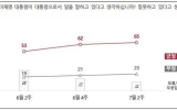 정치 뉴시스2025. 07.10[나이스데이] 이재명 대통령의 직무 수행에 대해 '잘하고 있다'는 평가가 65%, '잘못하고 있다'는 평가가 23%라는 여론조사 결과가 10일 나왔다. 엠브레인퍼블릭·케이스탯리서치·코리아리서치·한국리서치가 지난 7일부터 9일까지 만 18세 이상 남녀 1003명을 대상으로 진행한 전국지표조사(NBS) 결과 이같이 집계됐다. 모름·무응답은 12%였다. 같은 기관이 실시한 지난 6월4주차 조사결과와 비교해 긍정 평가는 3%포인트(p), 부정 평가는 2%p 각각 올랐다. 긍정 평가는 50대(81%), 40대(77%), …