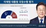 탑뉴스 뉴시스2025. 07.07[나이스데이] 이재명 대통령의 국정수행에 대해 '잘한다'는 긍정 평가는 62.1%, '잘못한다'는 부정 평가는 31.4%라는 여론조사 결과가 7일 발표됐다. 여론조사회사 리얼미터가 지난달 30일부터 이달 4일까지 전국 18세 이상 유권자 2508명을 대상으로 이 대통령 국정수행 평가 조사를 실시한 결과 이같이 집계됐다. '잘 모름'이라는 응답은 6.5%였다. 긍정 평가는 전주 대비 2.4%포인트(p) 올랐고, 부정 평가는 2.2%p 내렸다. 긍정 평가는 서울(7.6%p↑·61.1%), 부산·울산·경남(4.4%p…
