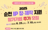 목포 박정래 기자2025. 07.04[나이스데이]순천시는 오는 10일까지 신규 IP를 활용한 문화콘텐츠의 초기 창·제작비를 지원하는 ‘순천 IP 창·제작 지원 사업’의 참가기업을 추가 모집한다고 밝혔다. 이번 사업은 콘텐츠 기업의 현장 목소리를 듣고 추진하는 사업이다. 애니메이션 및 웹툰 분야의 창·제작 초기 단계에 필요한 비용을 지원함으로써, 지역 내 콘텐츠 기업이 안정적으로 정착 및 성장할 수 있도록 돕기 위함이다. 모집대상은 20인 이하 관내 중소 콘텐츠 기업이며 관내 입주예정 기업과 개인 사업자도 신청 가능하다. 지원규모는 애니메이션 최대 1억 1천만 …