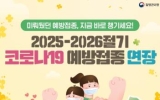 영암 이영욱 기자2026. 04.16[나이스데이]광양시 보건소는 2026년 여름철 코로나19 유행에 대비해 당초 4월 30일 종료 예정이었던 ‘2025-2026절기 코로나19 예방접종 사업’을 오는 6월 30일까지 연장한다고 밝혔다. 접종 대상은 ‘2025-2026절기 코로나19 백신(LP.8.1)’을 아직 접종하지 않은 고위험군으로 ▲65세 이상 어르신 ▲면역저하자 ▲감염취약시설 입원·입소자다. 또한 이미 접종을 마친 면역저하자도 면역 형성 및 유지 기간이 상대적으로 짧은 점을 고려해, 최소 접종 간격인 90일을 충족하면 2026년 5월 1일부터 1회 추가 접종…