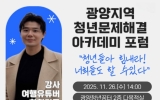 [나이스데이]광양시는 순천대학교 ‘글로컬대학30 사업’과 연계해 오는 11월 26일 오후 2시, 광양청년꿈터에서 ‘2025 광양지역 청년 문제 해결 아카데미 포럼’을 개최한다고 밝혔다. 순천대학교는 지역 청년이 직면한 문제를 진단하고 협력적 해법을 찾기 위해 지난 10월 순천을 시작으로 11월 광양, 12월 고흥에서 연속 포럼을 진행 중이다. 이번 포럼은 복지·문화 분야 논의를 중심으로 구성됐다. 이는 지난 9월 순천대학교가 광양·순천·고흥 청년을 대상으로 실시한 설문조사에서 광양 청년의 45%가 ‘복지·문화 분야’를 가장 …