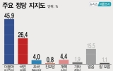 탑뉴스 뉴시스2026. 03.04[나이스데이] 더불어민주당과 국민의힘 간 정당 지지도 격차가 지난 연말보다 더 벌어졌다는 여론조사 결과가 4일 나왔다. 뉴시스가 여론조사회사 에이스리서치에 의뢰해 지난 1~2일 만 18세 이상 전국 성인 1004명에게 정당지지도를 조사한 결과 민주당 지지도는 45.9%, 국민의힘 지지도는 26.4%로 나타났다. 에이스리서치가 지난해 12월28~30일 실시한 같은 조사와 비교해 민주당 지지도는 4.4%p 상승했다. 반면 국민의힘 지지도는 1.3%p 하락했다. 양당 지지도 격차는 기존 13.8%p에서 19.5%p로 더 벌어졌…