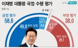 탑뉴스 뉴시스2026. 03.04[나이스데이] 이재명 대통령의 국정 수행 지지율이 58.6%라는 여론조사 결과가 4일 나왔다. 뉴시스가 여론조사업체 에이스리서치에 의뢰해 지난 1일부터 2일까지 전국 만 18세 이상 성인 남녀 1004명을 대상으로 실시한 조사에서 이 대통령의 국정 수행 평가를 물은 결과 '잘 하고 있다'는 긍정 평가는 58.6%, '잘 못하고 있다'는 부정 평가는 38.0%로 집계됐다. '잘 모르겠다'는 3.4%였다. 이 대통령 국정 지지율은 에이스리스치가 실시한 지난해 12월 5주차(12월28일~30일) 조사 결과와 비교해 긍정평가…