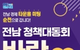 전남 이영욱 기자2025. 11.19[나이스데이]전라남도는 29일 동부지역본부에서 경제 타운홀 미팅인 ‘전남 청책대동회 바란(2차)’을 개최키로 하고 21일까지 정책 제안서를 받는다고 밝혔다. 지난 9월 전남도청에서 개최했던 1차 행사처럼, 강위원 경제부지사와 정책 제안자가 직접 만나 정책 제안을 청취하고 의견을 나누는 열린 토론장으로 마련된다. 전남 청책대동회 바란은 보편적, 공개적, 무제한적 소통을 하기 위해 남녀노소, 거주지역, 주제 범위 제한 없이 내·외빈 축사와 격려사, 마이크 독점이 없는 ‘3무’를 원칙으로 혁신적 창의와 비판적 지혜를 모으는 자리다. …