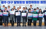 광주 이자형 기자2025. 11.18[나이스데이]광주광역시와 대구광역시가 18일 시청 3층 소회의실에서 ‘광주·대구 달빛동맹 발전위원회’를 열어 두 도시 간 실질적인 협력 강화 방안을 논의했다. 이날 회의에서는 기존 공동 협력과제의 추진 상황을 공유하고, 신규 협력과제 심의와 정부·국회에 전달할 메시지 퍼포먼스를 진행했다. 두 도시는 지난 9월17일 국회에서 오랜 숙원사업인 달빛철도 건설사업의 예비타당성조사 면제를 촉구하는 공동선언문을 발표했다. 이어 군공항 조기 이전, 식품·뿌리·의료·로봇산업 내 특별관 운영, 달빛동맹 자원봉사 교류, 문화예술 교류 등 5개 분…