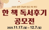전남 이영욱 기자2025. 11.18[나이스데이]전남대학교 도서관은 11월 17일부터 12월7일까지 ‘2025 한 책 독서후기 공모전’을 진행한다. 이번 공모전은 ‘광주·전남이 읽고 톡 하다’사업의 일환으로, 올해의 한 책으로 선정된 김애란 작가의 『이중 하나는 거짓말』을 읽고 독서의 의미를 나누고 서로 다른 생각을 공유하기 위한 취지로 마련됐다. 공모전에는 전남대학교 재학생뿐만 아니라 광주·전남 지역민 누구나 참여할 수 있다. 자세한 사항은 전남대학교 도서관 홈페이지 공지사항을 참고하면 된다. 전문가 심사를 통해 최우수·우수·장려 등 각 부문별 수상자를 …