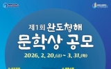 고흥 주용규 기자2026. 02.26[나이스데이] ‘치유의 섬’ 완도군에서는 많은 사람들이 문학의 향기로 마음을 치유할 수 있도록 ‘제1회 완도 청해 문학상’ 공모전을 연다. 문학상 공모전은 완도가 지닌 ‘치유’를 문학의 영역으로 확장해 완도의 가치를 알리고 완도 문학의 저변을 넓히기 위해 마련됐다. 특히 공모전이 첫 회임에도 총 상금이 4,100만 원에 달하는 등 전국 규모의 수준으로 첫발을 내디딘다. 공모는 세 부문으로 진행된다. 일반부(20세 이상 국민) 참가 요건은 2년 이내에 출간(미 수상)한 시 또는 소설 1권, 청소년부(19세 이상 전남…