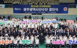 [나이스데이]광주광역시체육회(회장 전갑수)가 26일 오후 2시 빛고을체육관에서 ‘제106회 전국체육대회 광주선수단 결단식’을 열어 대회 필승을 위한 각오를 다졌다고 밝혔다. 이날 행사에는 전갑수 체육회장, 김영문 광주시 문화경제부시장, 서용규 광주시의회 부의장, 이정선 광주시교육감을 비롯한 종목단체 회장, 임원, 육성학교장 등 관계자 400여 명이 참석해 광주시 대표선수단의 선전을 기원하며 격려했다. 행사는 사전공연, 전국체전 참가계획 보고, 대표선수 훈련영상 시청, 선수단기 수여, 선수대표 선서, 응원 메시지 및 격려금 전달 …