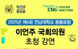 전남 이영욱 기자2025. 11.16[나이스데이]이언주 국회의원이 전남대학교 용봉포럼에서 한미 산업동맹의 흐름 속에서 호남경제의 새로운 성장 전략과 산업적 돌파구를 모색한다. 14일 전남대학교(총장 이근배)에 따르면, 오는 11월 18일 오후 2시, 대학본부 국제회의동 2층 용봉홀에서 ‘2025 제4회 전남대학교 용봉포럼’을 개최한다. 이번 포럼은 올해 마지막 용봉포럼으로, 사회 각 분야의 리더들이 모여 국가와 지역의 미래를 논의하는 지식 교류의 장이다. 이날 초청 연사로 나서는 이언주 국회의원(제22대 국회·용인시정)은 더불어민주당 최고위원이자 미래경제성장전략위…