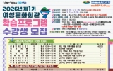 여수 손태성 기자2026. 02.19[나이스데이]여수시 여성문화회관에서 진행하는 ‘제1기 여성문화회관 학습프로그램’ 수강생을 오늘(19일)부터 25일까지 5일간 수강인원 전원을 선착순으로 모집한다. 모집 과목은 ▲양재, 제과제빵, 홈패션 등 기능반 8개 ▲한지공예, 오카리나, 캘리그라피 등 취미반 17개 ▲의류수선, 생활요리, 플루트 등 야간반 12개 등 37개 과목이다. 이 중 밸리댄스, 소도구 필라테스, 여성합창, 체형교정발레 4개 과목은 여성 전용 수강 과목이다. 모집인원은 573명으로 교육 기간은 3월 2일부터 5월 29일까지다. 여수시에 거주하는 …