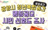 곡성 이경식 기자2026. 02.13[나이스데이]광양시는 광양읍 읍내리에 준공 예정인 ‘고향올래 청년복합공간(실습공간)’의 공식 명칭 선정을 위해 2월 13일부터 2월 20일까지 시민 선호도 조사를 실시한다고 밝혔다. 이번 사업은 2023년 행정안전부 주관 ‘고향올래(GO鄕 ALL來)’ 사업에 선정되어 추진 중인 청년복합공간 조성사업으로, 외지 청년들에게 교육·실습·주거 공간을 제공하고 지역 살이 체험과 다양한 프로그램을 지원해 지역 정착을 유도한다. 이에 앞서 시는 1월 30일부터 2월 6일까지 7일간 ‘MY광양’ 앱을 통해 명칭 제안을 접수했으며, 총 276건…