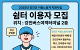 완도 주용규 기자2025. 10.23[나이스데이]강진군은 군이 고용노동부가 주관하는 공모사업에 최근 선정돼 강진버스여객터미널 2층에 이동노동자를 위한 쉼터를 조성하기 위해 현재 리모델링 중이며 12월 중 개소될 예정이라고 23일 밝혔다. 쉼터는 지역 내 이동노동자에게 안전하고 쾌적한 휴식 공간을 제공함과 동시에, 실질적인 지원 프로그램을 연계하기 위해 마련됐다. 쉼터 이용자는 상시 모집 중이며, 쉼터 이용 및 관련 지원을 희망하는 경우 빠른 신청이 권장된다. 이용자 모집이 일정 인원에 도달하면, 안전·법률·정책 등 실무 중심의 교육이 진행된다. 교육 수료자는 이후 …