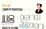 광양 손태성 기자2025. 11.07[나이스데이]광양용강도서관은 오는 11월 23일 오후 2시, 마로극장에서 초등학교 1~3학년 어린이를 대상으로 그림책 『싸움』의 저자 민아원 작가와의 만남을 운영한다고 밝혔다. ‘싸움: 여러 가지 감정 이야기’를 주제로 한 이번 작가와의 만남은 어린이들의 감수성과 사회성을 높이고, 건강한 자아와 관계 형성에 도움을 주기 위해 마련됐다. 함께 읽을 도서 『싸움』은 뾰족뾰족한 마음이 만나 별이 되는 이야기를 담은 그림책으로, 갈등 속에서도 서로의 감정을 이해하고 함께 성장해 가는 모습을 유쾌하면서도 따뜻하게 그려냈다. 참가 인원은…