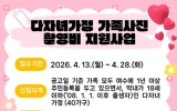 여수 손태성 기자2026. 04.15[나이스데이]여수시가 다자녀 가정의 소중한 일상을 기록하고 가족 간 유대감을 높이기 위해 가족사진 촬영비 지원에 나선다. 이번 사업은 다자녀 가정에 대한 긍정적인 인식을 확산하고 행복한 순간을 추억으로 남길 수 있도록 마련됐다. 신청 대상은 공고일인 4월 13일 기준 부모와 자녀 모두 여수시에 1년 이상 거주 중이고, 막내 자녀가 18세 이하(2008년 1월 1일 이후 출생)인 둘째아 이상 다자녀 가정이다. 신청 기간은 4월 28일까지며, 신청 서류와 유의사항 등 자세한 내용은 여수시 누리집 고시공고에서 확인할 수 있다. …