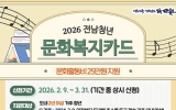 순천 손태성 기자2026. 02.11[나이스데이]순천시는 청년들의 문화생활 향유 및 자기계발 활동을 지원하기 위해 2026년 전남청년 문화복지카드 지원사업 대상자를 오는 3월 31일까지 모집한다. 청년 문화복지카드는 공연관람, 학원수강, 도서구입 등 문화복지비를 1인당 연 25만 원 지원해 주는 사업이다. 지원 대상은 현재 주민등록상 주소지가 순천시이면서 2024년 2월 9일 이전부터 전남 도내에 주소를 두고 2년 이상 계속 거주하는 19~28세(1998~2007년생) 청년이다. 지난해 지원금을 받은 대상자도 올해 다시 신청해야 한다. 다만, 복지포인트를 지…