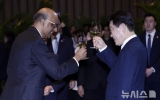 탑뉴스 뉴시스2026. 03.03[나이스데이] 싱가포르를 국빈 방문 중인 이재명 대통령은 2일 싱가포르 대통령 내외가 주최한 만찬에 참석해 "남북한 대화의 장을 열고 한반도 평화의 실질적 진전을 이루기 위한 우리 정부의 노력에 싱가포르가 전폭적인 지지를 계속해서 보내주실 것으로 믿는다"고 밝혔다. 이 대통령과 김혜경 여사는 이날 싱가포르 카펠라 호텔에서 열린 국빈 만찬에서 2018년 싱가포르 북미 정상회담을 거론하며 "오늘 만찬을 하게 된 이 장소는 과거 싱가포르가 역사적인 북미 정상회담을 주선한 곳이기도 하다"며 이같이 말했다. 이어 "서로 입장이 다…