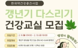나주 이영욱 기자2026. 02.06[나이스데이]전남 나주시보건소가 갱년기 증상을 겪고 있는 중장년의 건강 증진을 위해 ‘2026년 상반기 갱년기 다스리기 건강교실’ 참여자를 모집한다. 이번 건강 교실은 갱년기로 인한 신체·정신적 변화를 건강하게 관리할 수 있도록 한의약 기반 건강교육과 다양한 체험형 프로그램을 제공하는 것이 특징이다. 모집 대상은 갱년기 증상을 겪고 있는 40~64세 중장년 60명으로 운영 장소별로 각 30명씩 선착순 모집한다. 참여 신청은 오는 9일부터 13일까지 5일간 진행되며 QR코드 또는 URL을 통한 온라인 접수만 가능하다. 프로그램…