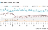 탑뉴스 뉴시스2025. 10.31[나이스데이] 더불어민주당과 국민의힘 지지율 격차가 줄어들었다는 여론조사 결과가 31일 나왔다. 한국갤럽이 지난 28~30일(10월 다섯째 주) 전국 만 18세 이상 유권자 1002명을 대상으로 정당 지지도를 조사한 결과 민주당은 41%, 국민의힘은 26%로 집계됐다. 직전 조사(10월 넷째 주)와 비교해 민주당 지지율은 2%포인트 떨어졌고, 국민의힘 지지율은 1%포인트 올랐다. 이어 조국혁신당 3%, 개혁신당 3% 진보당 2% 순으로 지지율이 높았고, 지지하는 정당이 없는 무당층은 26%로 나타났다. 성향별로…