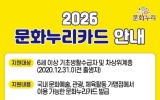 나주 이영욱 기자2026. 02.02[나이스데이]광주문화재단(대표이사 직무대행 전은옥)은 2월 2일부터 6세 이상 기초생활수급자 및 차상위계층을 대상으로 2026년 문화누리카드 발급과 사용이 가능하다고 밝혔다. 2026년 문화누리카드 지원금은 지난해 대비 1만 원 인상된 1인당 15만 원이며, 청소년기(2008~2013년생)와 준고령기(1962~1966년생) 대상자에게는 1만 원이 추가 지원된다. 카드 발급 기간은 2월 2일부터 11월 30일까지로, 광주광역시 96개 동 행정복지센터에 방문하거나, 문화누리카드 누리집과 모바일 앱, 고객센터 ARS를 통해 발급…