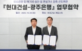 목포 박정래 기자2025. 10.29[나이스데이] 광주은행이 현대건설(대표 이한우)과 손잡고 신재생에너지 보급 확대 및 RE100(재생에너지 100% 사용) 실천 가속화를 위한 ‘녹색 동맹’을 맺었다. 이를 통해 탈탄소 및 기후 대응에 앞장서며 지역 기업들의 친환경 전환을 선도할 계획이다. 광주은행은 현대건설과 ‘ESG경영 및 RE100 실천 등 온실가스 감축 선도 위한 업무협약’을 체결했다고 29일 밝혔다. 협약식은 현대건설 본사에서 정일선 광주은행 부행장과 이동훈 현대건설 상무 및 관계자들이 참석한 가운데 진행됐다. 이번 협약의 핵심은 ‘재생에너지 직접전력…