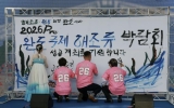완도 주용규 기자2025. 10.29[나이스데이]완도군은 ‘청정 완도 가을 섬 여행’ 행사 마지막 날인 10월 26일 해변공원에서 ‘2026 Pre 완도국제해조류박람회’ 성공 개최를 기원하는 퍼포먼스를 진행했다. 2026 Pre완도국제해조류박람회는 완도의 대표 해양자원인 해조류와 전복을 주제로 2026년 5월 2일부터 7일까지 6일간 해변공원 일원에서 열리며 국제 심포지엄, 수출 상담회 등 다양한 프로그램이 진행될 예정이다. 이날 보여준 퍼포먼스는 ‘해조류, 전복하면 완도여라! 2026 Pre 완도국제해조류박람회 성공 개최를 기원합니다!’라는 문구를 캘리그라피로 …