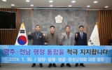 전남 이영욱 기자2026. 01.30[나이스데이]담양군·함평군·영광군·장성군 등 전남 4개 군의회 의장단은 30일 영광군의회에서 광주–전남 행정통합을 염원하는 공동 퍼포먼스에 참여했다. 이번 퍼포먼스는 행정구역의 경계를 넘어 광주와 전남이 하나의 생활권이자 경제권으로 도약하기 위한 의지와 공감대를 확인하기 위해 마련됐다. 특히 지역 간 협력과 상생 발전의 필요성에 대해 지방의회 차원에서 뜻을 모았다는 점에서 의미를 더했다. 의장단은 “행정통합은 지역의 미래 경쟁력 확보와 균형발전을 위해 더 이상 미룰 수 없는 과제”라며 “지금이야말로 광주와 전남의 미래를 결정할 …