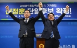 정부 뉴시스2026. 03.30[나이스데이] 더불어민주당 전남광주특별시장 경선 주자인 강기정·신정훈 예비후보가 여론조사 결과를 토대로 신 후보를 6월 지방선거 통합 특별시장 단일후보로 합의했다. 강 후보는 단일후보 캠프에서 상임선거대책본부장을 맡아 경선을 진두지휘하기로 했다. 이에 따라 2강2중1약 구도로 유지해온 민주당 경선 구도는 중위권 후보간 연대로 예측불허의 3강 체제로 재편될 것으로 예상된다. 두 후보는 30일 오전 광주시의회 브리핑룸에서 기자회견을 열고 후보 단일화 여론조사 결과를 존중해 신 후보를 단일후보로 결정했다고 공식 …