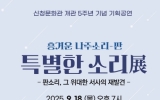 담양 황일섭 기자2025. 09.04[나이스데이]전라남도 나주시가 나주신청문화관 개관 5주년을 맞아 특별 무대를 진행한다. 4일 나주시에 따르면 오는 18일 오후 7시 기획공연 ‘흥겨운 나주소리-판 특별한 소리展’을 열어 소리의 기원과 전승의 의미를 되새기는 특별 공연을 개최한다. 이번 공연은 판소리의 본향 나주에서 지역 예인들의 넋을 기리고 위로하는 ‘나주신청 선생안제’를 재현하며 판소리의 시작부터 일제강점기를 거쳐 현재에 이르기까지의 변화상을 무대에 담는다. 출연진으로는 국가무형유산 판소리 예능 보유자 윤진철, 판소리고법 전승 교육사 정회천, 승무 전승 교육…