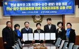 장성 황일섭 기자2026. 01.27[나이스데이]여수시의회는 27일 오후 3시 순천시의회 의장실에서 강형구 순천시의회 의장, 최대원 광양시의회 의장과 함께 '전남·광주 행정통합에 따른 전남동부권(여수·순천·광양) 미래경제동맹 공동선언문'을 발표했다. 이번 공동선언은 전라남도와 광주광역시의 행정통합 논의가 진행되는 가운데, 전남동부권이 국가 산업·에너지·물류 거점으로서 수행해 온 역할과 향후 기능이 통합 과정에서 반드시 반영돼야 한다는 데 3개 시의회 의장이 뜻을 모으며 마련됐다. 3개 시의회 의장은 공동선언을 통해 전남·광주 행정통합이 수도권 일극체제 완화와 국가…