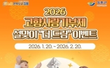 나주 이영욱 기자2026. 01.21[나이스데이]장흥군은 설 명절을 앞두고 고향사랑기부제 활성화를 위해 1월 20일부터 2월 20일까지 ‘2026 설맞이 고향사랑기부제 더 드림 이벤트’를 진행한다. 이벤트 기간 중 ‘고향사랑e음’을 통해 장흥군에 10만 원 이상 기부하면 별도의 신청 절차 없이 자동으로 이벤트에 응모된다. 해당 조건을 충족한 기부자 전원에게는 모바일 상품권 5,000원이 경품으로 제공된다. 또한 이벤트 종료 후에는 무작위 추첨을 통해 10명을 선정, 5,000원권 모바일 상품권을 추가로 증정하는 혜택도 마련돼 있어 최대 1만 원 상당의 경품을 받…